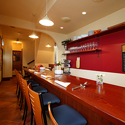 1階はカウンター6席とテーブル4席。2階席は最大10名までの貸切りも可能なテーブル席をご用意。誕生日会や飲み会、ご家族での集まりなどでもご利用いただけます。 こだわりの内装は、赤ワインを彷彿とさせるボルドー色の壁がポイント!店内が明るく和やかになっています!
