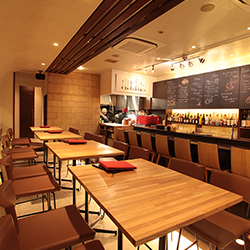 裏路地にたたずむちょっとした隠れ家のような当店。 シンプルで大人の雰囲気漂う店内は、シェフが調理をするところを眺めながら食事を楽しめるカウンター席に、最大12名様までご利用いただけるテーブル席、デートや女子会にもおすすめな半個室のお席をご用意! プロジェクターも完備しているので、結婚式などの二次会・イベントやパーティーにもご活用いただけます。