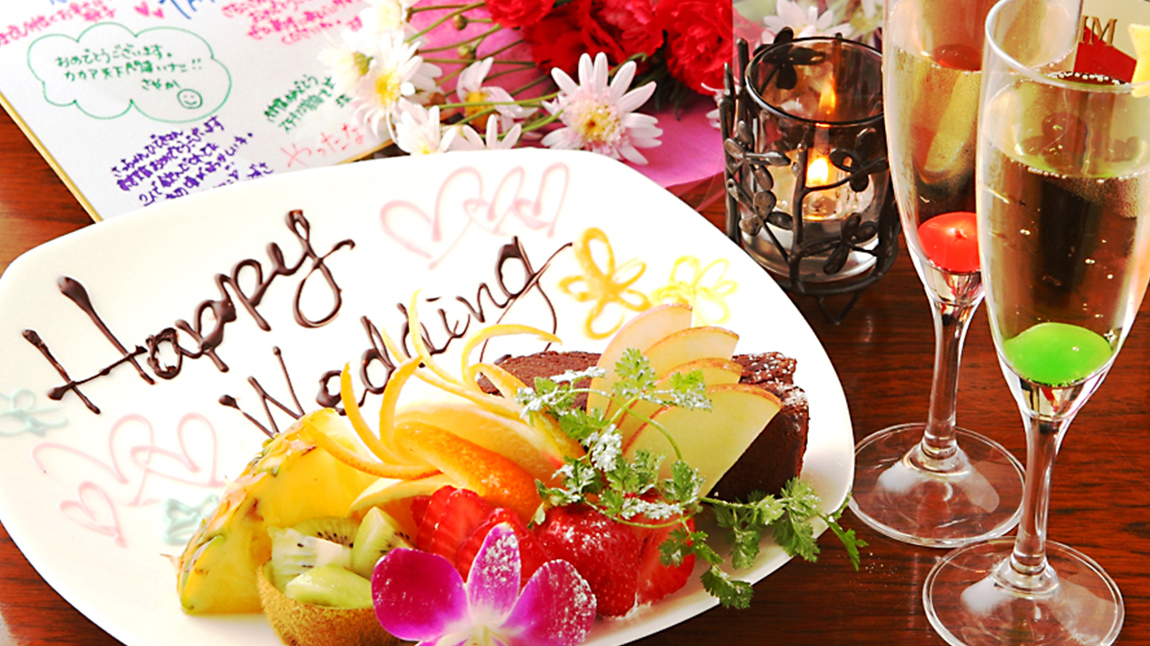 大切な方のお誕生日・記念日などのサプライズ演出なら当店におまかせください! 事前のご相談で、主役の方に【①お店の入口にあるウェルカムボードの手描きデコレーション】【②好きなキャラクターやメッセージを描いたオリジナルデザートプレート】【③記念写真撮影】【④色紙】をサービス♪ お客様のかけがえのない特別な日をスタッフ一同お手伝いいたします!