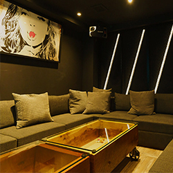 2~6名様と6~12名様までご利用いただける完全個室は、黒をベースにしたシックで高級感のある雰囲気を演出。大迫力の65インチ大型モニターを完備しているので、カラオケやお好みの映像を流すなど、様々な用途でご活用いただけます。