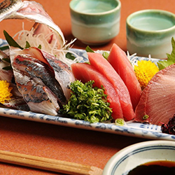 当店自慢の鮮魚は、毎朝豊洲より仕入れるものと、自社流通により直接仕入れるものとで、常に美味しいものをお召し上がりいただけるように工夫をしております。 旬の味わいを楽しむならお刺身で、お酒に合わせてじっくりと魚の旨みを味わうなら煮つけや焼き物で。厳選した鮮魚をぜひ様々なお料理でお召し上がりください。