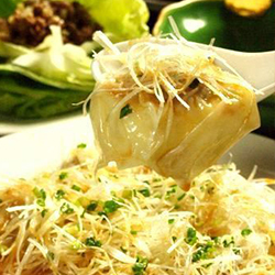 熱々のワンタンの上に、新鮮な細切りのネギをたっぷりのせた「ネギワンタン」。シャキシャキのネギともちもちのワンタンにジューシーなお肉が、醤油ベースのあっさりとしたタレと絡むたまらない一品。 醤油味以外に「黒酢風」や「胡麻ダレ風」も用意されているので、好みに合わせて選べるのも◎