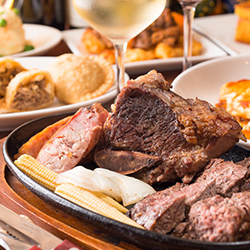 見た目も圧巻のボリューム!名物「炭火焼ステーキ」や牛肉、鶏肉、ハムとチーズをパン生地で包んだ南米風のミートパイ「エンパナーダ」など、日本人の舌にもあう絶品料理を豊富に用意しています!