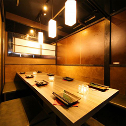 優しい和の灯りが照らす店内は全席個室!大切な人とのデートや、気軽に話ができる友人・同僚とのお食事の際にも最適!! 個室は最大100名様までお入りいただけるため、大人数での歓送迎会でも安心。 団体での宴会を担当する幹事様必見です!