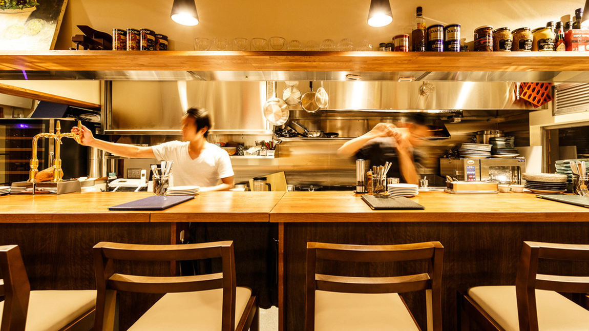 仕事帰りに、休日に・・・ ふらりと気軽に立ち寄れるカウンター席でお料理とワインをじっくりお楽しみください。 気さくなスタッフとのコミュニケーションを楽しみながら、 たまには時間を忘れてゆったりと過ごしてみてはいかがですか。