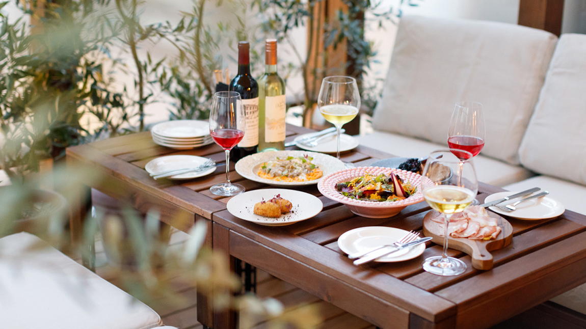 上質な料理&ワインを気取らず楽しめる空間 人気のソファテラス席でゆったりとお過ごしください♪
