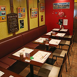 地下へとつづく黄色いトンネルを抜けると、南イタリアの民家をイメージしたアットホームな空間がお出迎えします。店内の壁紙にはブドウやニンニク、レモンなどのイラストが描かれていて、そのポップでお洒落な雰囲気は女子会やデートにもおすすめです◎ 全26席の空間は20名から貸切も承りますので、各イベントやパーティにもご活用ください!