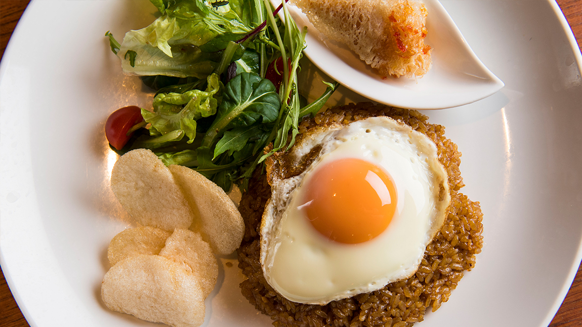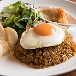 バリ島の代表的な料理でもあるナシゴレン! サンバルという辛味調味料がピリッとウマ辛く効いたエスニックな炒飯でやみつきになる味です。JATI Seijoではバリ出身のシェフが本場の味をご提供いたします!ランチ、ディナー共にご注文いただけますので、ぜひ当店自慢のお料理を味わってください!