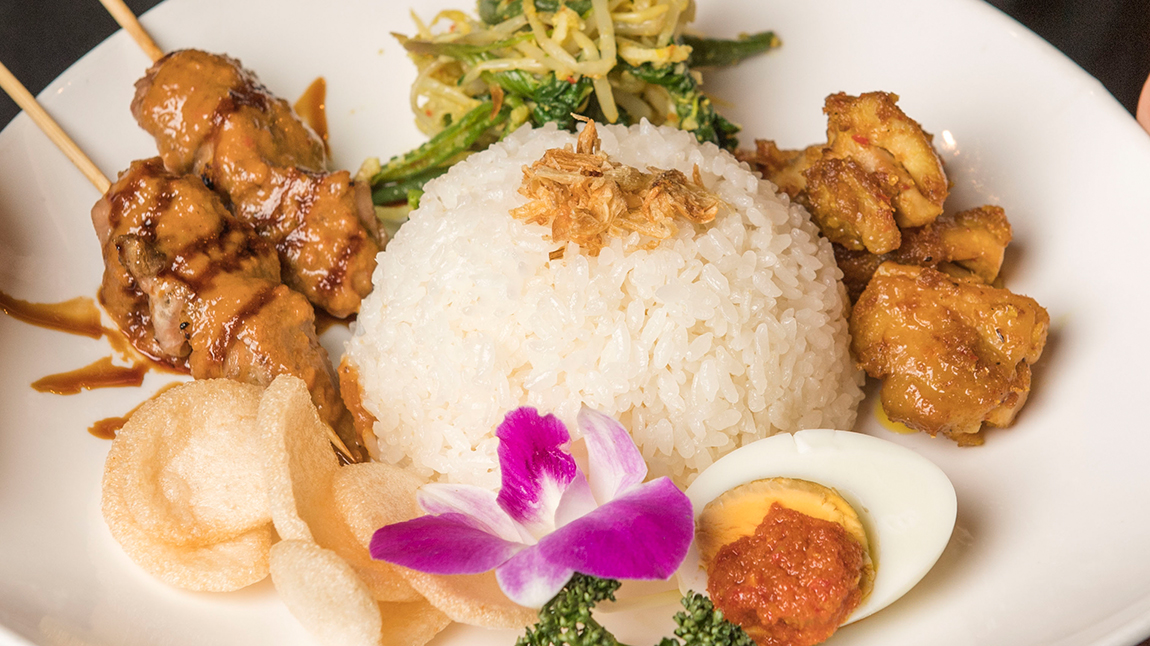 「旅先のバリ島で出会った心に残るレストラン」をコンセプトとして、 インドネシア料理を中心に、岩手県産、群馬県産の地鶏など厳選された食材を使用した料理など、 ジャンルに捉われず多種多彩なメニューをご提供しております。