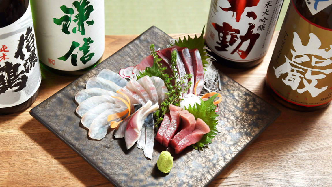 新鮮な海の幸を使用した刺身・揚げ物・焼き魚を厳選の日本酒と供に