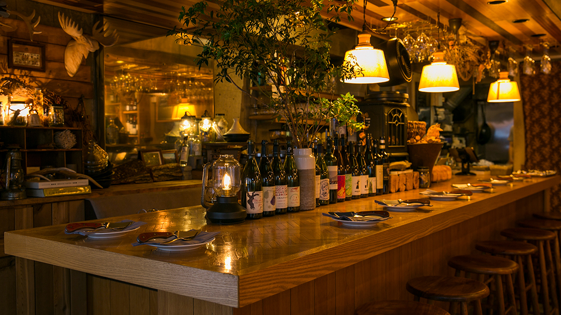 各地で大人気の【SARU】学芸大学店のテーマは「都会の中のロッジ」 こだわりの山の幸と厳選ワインでゆったりおくつろぎください。