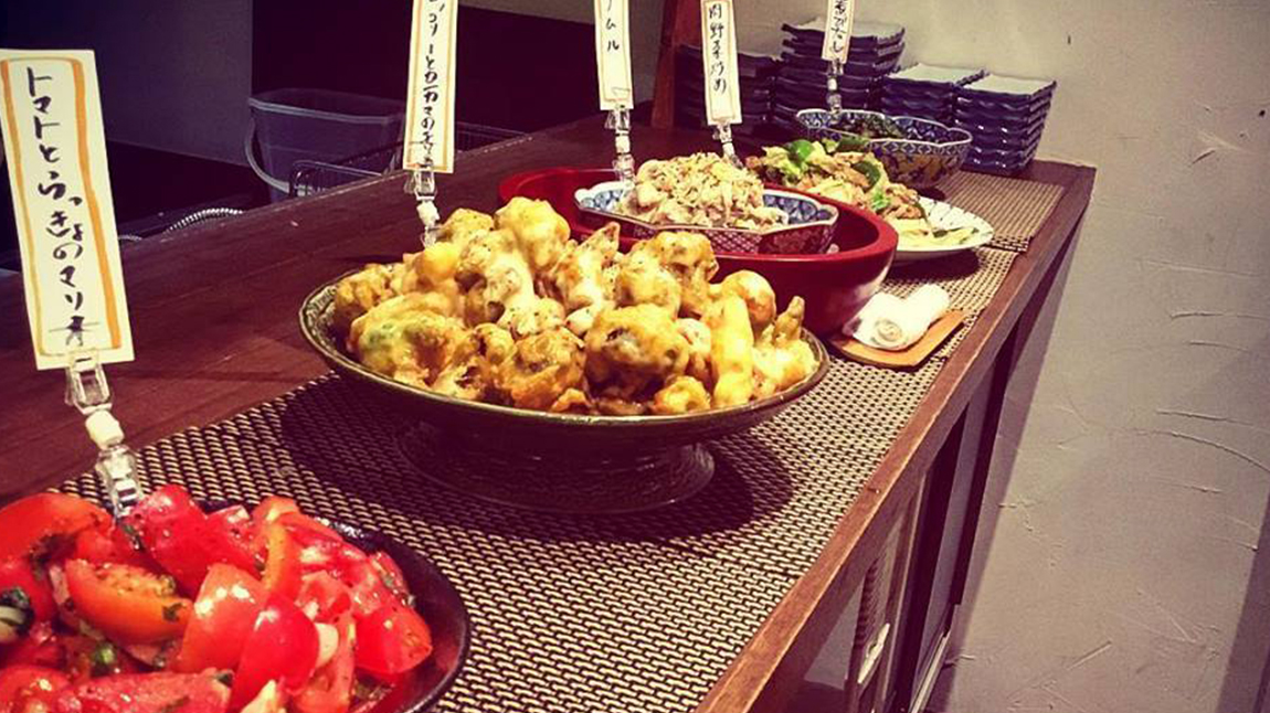 このお店に行ったらまず食べたいのが「セルフでおばんざい」。お店のカウンターにある5種類のお料理から好きなものを好きな分だけお皿に盛れるメニュー! 日によっていろいろ違うので、いつ行っても飽きずに食べられます!