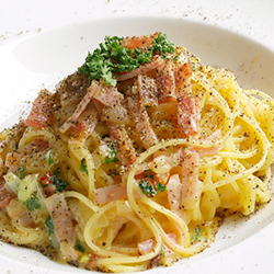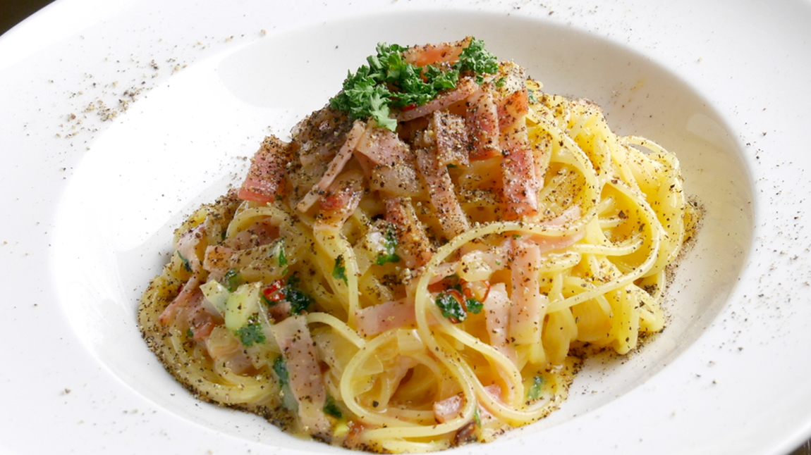 パスタで一番人気は『カルボナーラ』。生クリームを一切使用していないにもかかわらず、濃厚でクリーミーな味で満足いただけること間違いなし。 他にも、『天使の海老のアヒージョ』や『アランチーニ(ライスコロッケ)』『低温調理とりもも肉のコンフィ』などアラカルトメニューも多数ご用意。