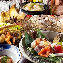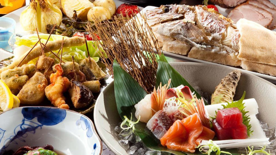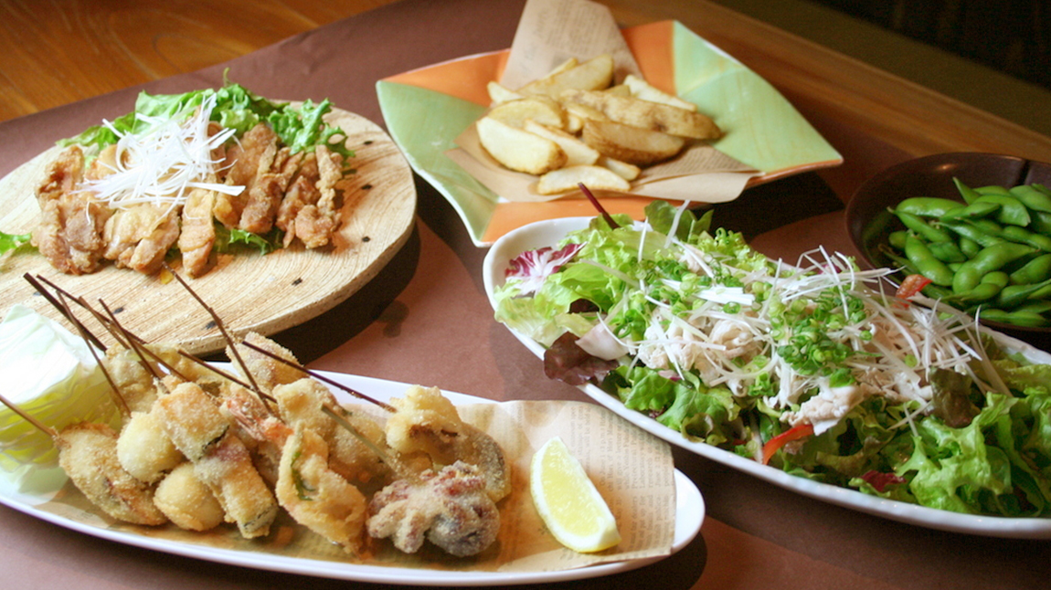 東京や横浜の市場へと店主自ら足を運び、季節の旬やその日の新鮮な魚介を厳選し仕入れ。 多くの方に味わっていただきたいという想いから、天然の本マグロもご堪能いただける「名物お造り盛り合わせ」など、刺身をはじめとする海鮮料理としてリーズナブルにご提供! もちろん魚介以外にも、種類豊富な串揚げやA5ランク和牛の炭火焼きなど多種多彩な料理メニューをご用意しております♪