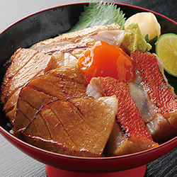 独自にブレンドされた当店のシャリは熟成酢を立たせずにマイルドに仕上げたこだわりのシャリと、50年以上の目利きで選んだ新鮮で最高級の魚をお昼限定の握り鮨や海鮮丼でご用意させていただいております。