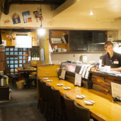 木材を基調としたレトロな店内は、大人がゆったりとくつろげる落ち着いた空間。 掘りごたつの席もあるので、足を伸ばしてラクにしながら癒しの時間をお過ごしいただけます!また、カウンターの席は一人呑みやデートにもおすすめです♪