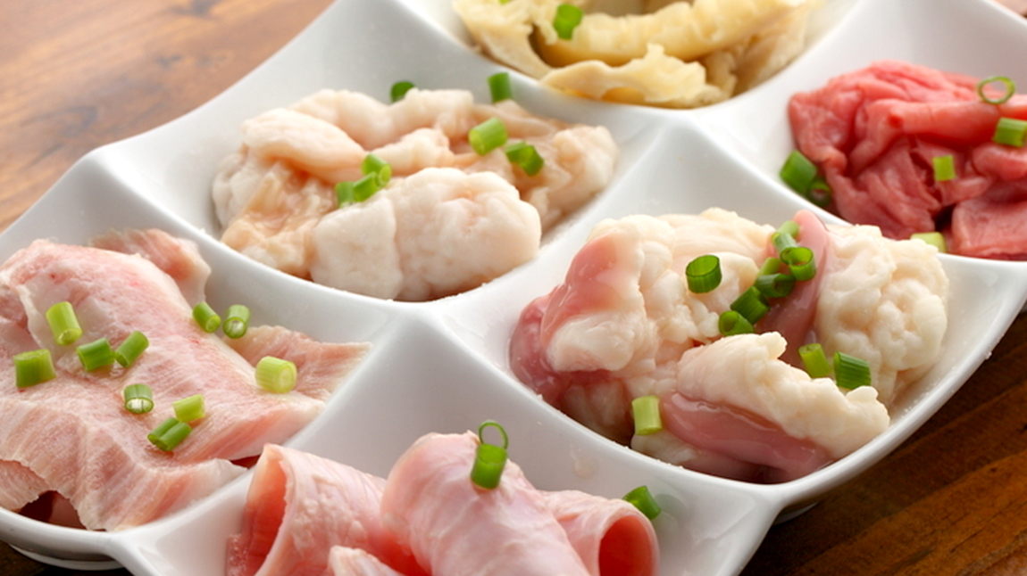 メニューがいっぱいで選べないときにうれしいのが『セットメニュー』。焼肉やホルモンの盛り合わせがお得に味わえるとお店の人気メニューになっています。 中でも、カルビ、ハラミ、ロース、野菜がセットになった「お得3点セット」はお店に初めて来た方にも、常連のお客様にも大好評! 『今日はちょっと贅沢に…』という方には、厚切り特上タン塩を含む「プレミアムセット」がおすすめです。