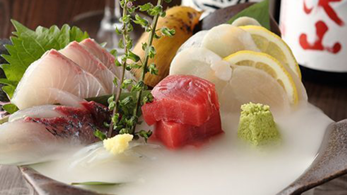 鮮魚の盛り合わせにドライアイスのスモークが使われていて、思わず写真撮りました! 味も鮮度抜群で満足でした!